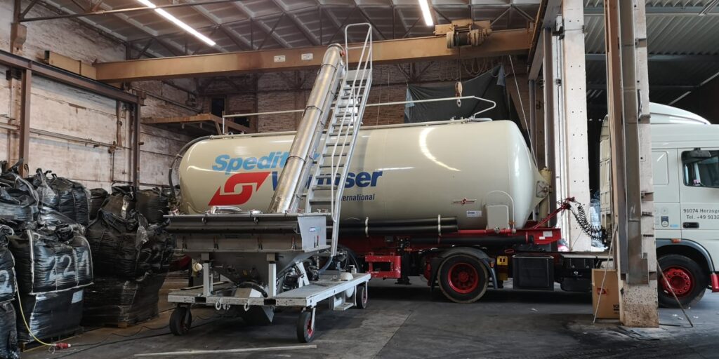 Met een Dino bulkwagenvuller kunt u producten verpakt in big bags en/of losgestorte bulkgoederen zoals borax, bentoniet, calciumsulfaat, hemoglobine poeder, magnesiumoxide, natriumcarbonaat, maar ook bloem, tapiocameel en suiker geautomatiseerd en stofarm verladen naar bulkwagens, ook wel silowagens of tankwagens genoemd. Naast de intake van big bags en los gestorte bulkgoederen, is het ook mogelijk om octabins, (25kg)zakgoed en containers met inner liner te storten in de Dino bulkwagenvuller of gebruik te maken van een shovel, ook wel front loader of bobcat genoemd.