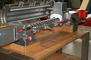Unter der Marke Celsius stellen wir Schneckenwärmetauscher her. Als Beispiel dafür haben wir unseren Eierschalentrockner zum Trocknen aufgeschlagener, nasser Eierschalen in der Werkstatt aufgestellt. Für unsere Besucher war die Maschine natürlich sehr interessant.