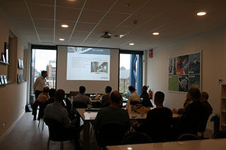 Die Initiative zum Besuch bei Van Beek hat David Hostelle von IP&D Experts ergriffen, der auch Schriftführer der NWGB ist. Der Arbeitsgruppe gehören ca. 120 Mitglieder aus Universitäten, Fachinstituten, der Verfahrensindustrie und dem Maschinenbau an. In der Gruppe kann der Erfahrungs- und Wissensaustausch über Trockenprozesse und alle mit ihnen zusammenhängenden Aspekte erfolgen. Diese Exkursion war ein gutes Beispiel dafür, da unter anderen David Hostelle einen Vortrag über die Messung relevanter Eigenschaften von Pulvern und Granulaten hielt. Um einen breiteren Blick auf die Prozesse zu ermöglichen, haben auch andere Anlagenhersteller Vorträge gehalten.