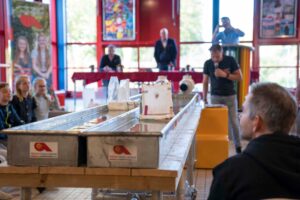 Während des Tech Challenge entwerfen Schüler:innengruppen von Grundschulen aus Heusden bei uns und anderen Technikbetrieben ein Boot. Dazu bekommen sie eine einheitliche Toolbox mit Material und Werkzeug sowie eine Anleitung, die speziell für das Tech Challenge entwickelt wurde. Schüler:innen aus der Gesamtschule De Overlaat aus Waalwijk betreuen diese Kinder der fünften Klasse. Ziel der jährlichen Veranstaltung ist: mehr Technikunterricht für Grundschulen.
