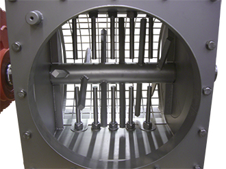Das zu zerkleinernde Produkt fällt durch einen Einlass auf rotierende Stifte. Diese robusten runden Stäbe drehen sich über einem Rost. Ihre Funktion ist einfach und effizient, da nur verpulvertes Material durch den Rost fallen kann. Die Maschenweite ist kundenseitig bestimmbar. Van Beek kann auch anhand von Produkttests bestimmen, welches Rost für Ihr Verfahren am besten geeignet ist.