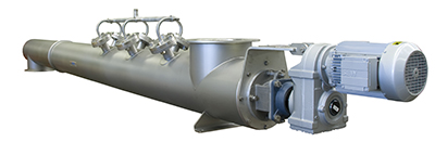 The conveyor has a twin-walled casing and there is a vacuum for insulation. The screw is easy to remove from the body using a demountable flange on the outlet side. This makes the screw quick and easy to clean.