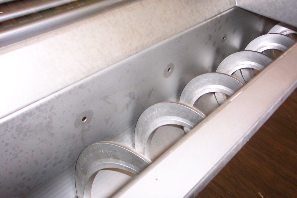 The absence of a shaft in shaftless conveyors eliminates product build-up around the shaft, problems with intermediate bearings and contamination of end bearings and seals. For this reason, shaftless conveyors are often used for waste processing. Sludge, domestic waste, catering waste or screen particles can all be transported problem-free with a shaftless conveyor. Even large lumps of material can be transported easily.
