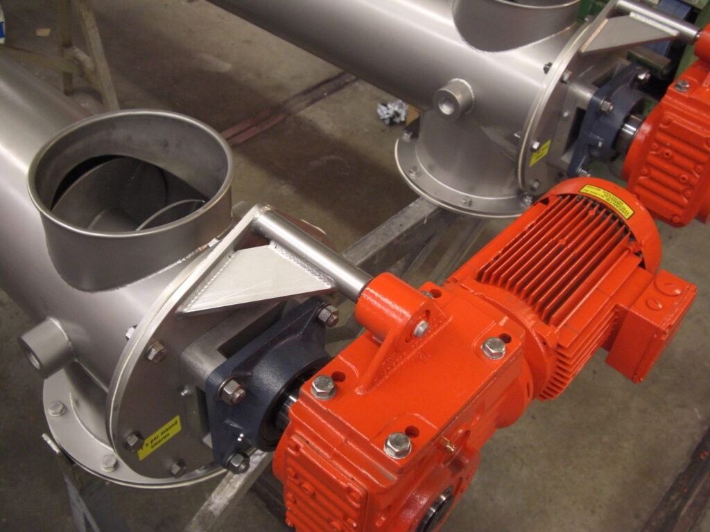 During operation, the weighing screw displays the material speed in metres per second. You can also read the number of kilograms already transported and the flow control drive from 0 to 100%. This is made possible because special load cells measure the mass of the screw plus content. This is then monitored in a junction box.