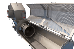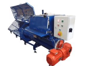 Van Beek can provide a control box on the machine with the necessary control circuit, however, the customer may want to control everything from a central control system. The safety switch in the motor’s control circuit is designed to stop the screw when the protective cage is opened.