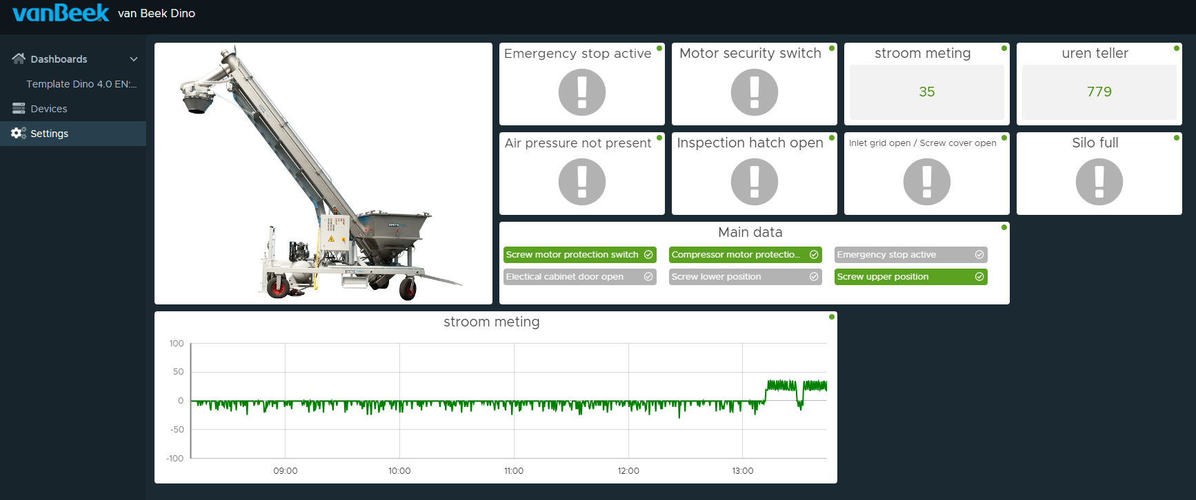 Accessing Dino 4.0 data is always going to be easy. That’s what we are working hard to achieve with Dashboard 4.0. As the customer, you will have access to the digital panel using the unique login details. The configuration has been customised with a default view of insight into hour counter, active compressor and vibration measurements. Ordering spare parts for your bulk truck loader can be done directly from the dashboard.