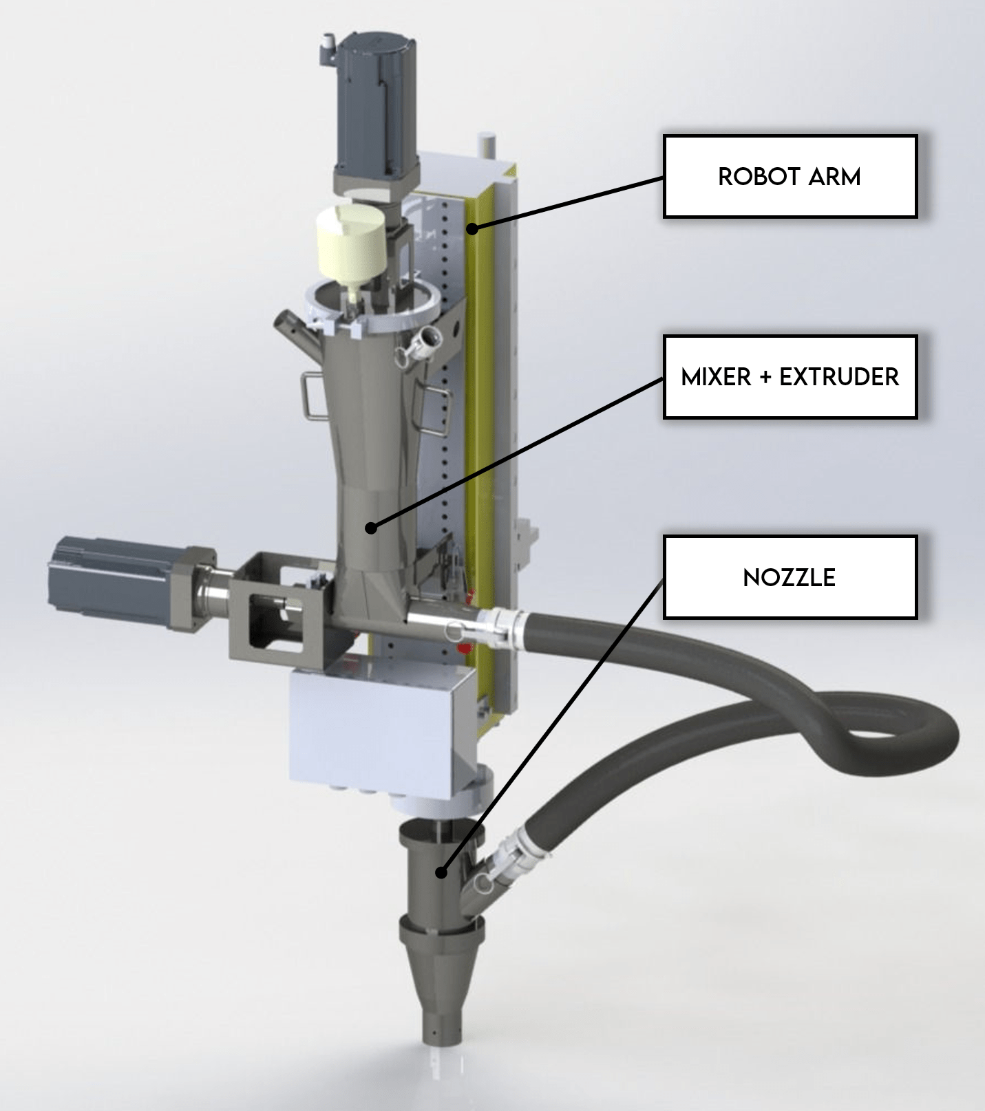 Greener, smarter, stronger. With this concept in mind, Zeeshan Yunus Ahmed began his PhD thesis in 3D concrete printing at Eindhoven University of Technology (TU/E) in 2020. He envisaged one machine for mixing wet concrete with fibre and the accurate application by extrusion using a robotic arm. With support from the TU/E and a Stimulus Program Management subsidy, he started working with fellow students in 2021. And he established his own company, Zavhy.