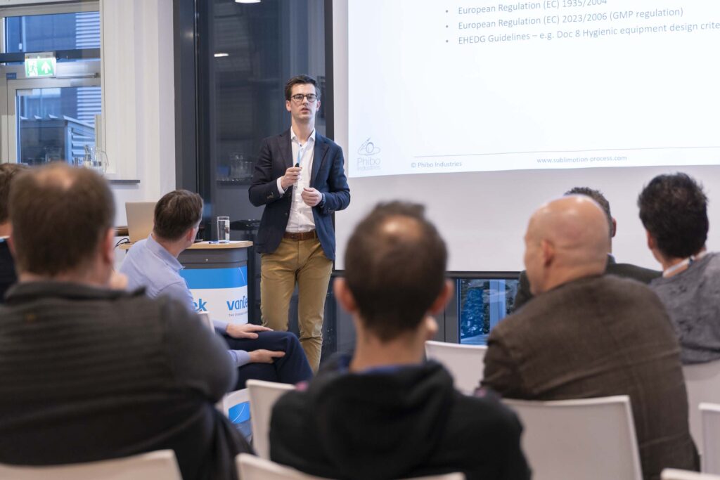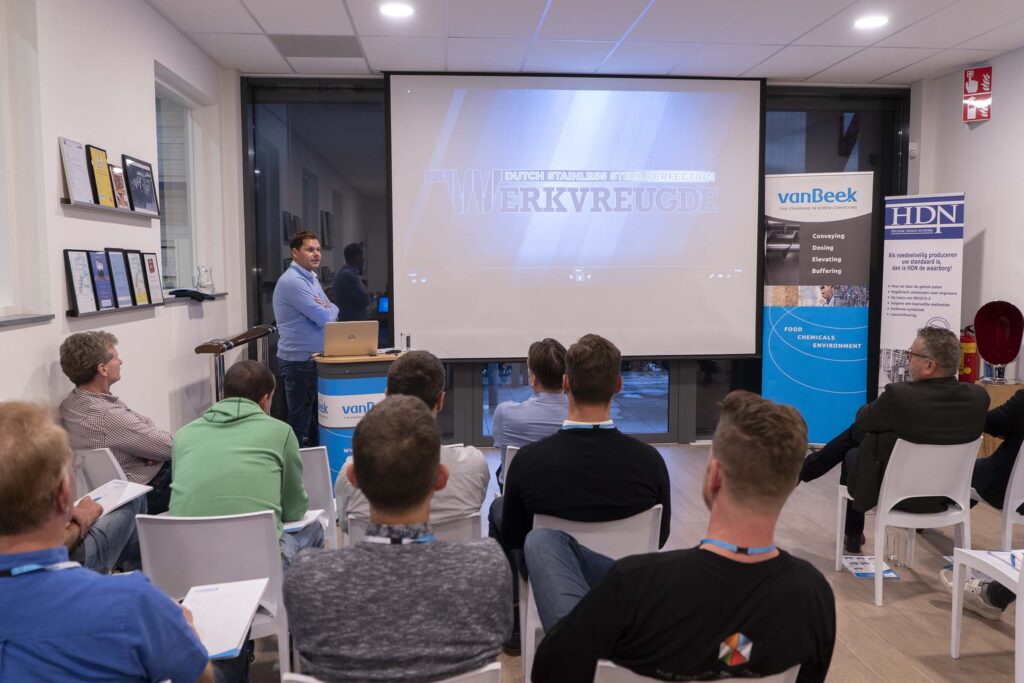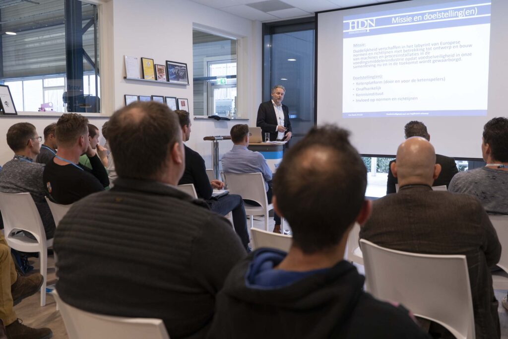 Leon van de Donk van HDN (Hygienic Design Network) zal ons een en ander vertellen over het hygiënisch ontwerp Daarna zullen Olivier Stulemeijer van Poederlak Benelux B.V., Pieter Haers van Phibo Industries en Jean-Paul Hulsman van Werkvreugde Brabant B.V. een korte uitleg geven over verschillende oppervlaktebehandelingen.