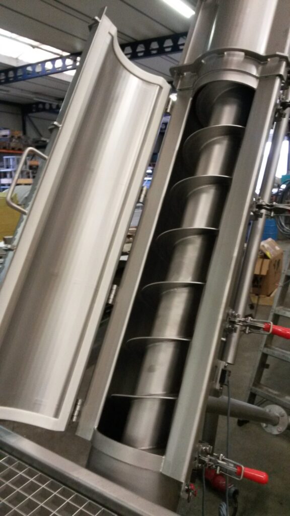 Met omegaschroeven kunt u snel overschakelen van het ene product op het andere zonder risico op contaminatie. Want dit systeem, dat wordt ingezet als een hoogvuller of opvoerschroef, heeft openklapbare deksels en is goed te reinigen en inspecteren. Product opvoeren naar hoger geleden stortpunten is een veelvoorkomende toepassing van deze omega opvoerschroeven.